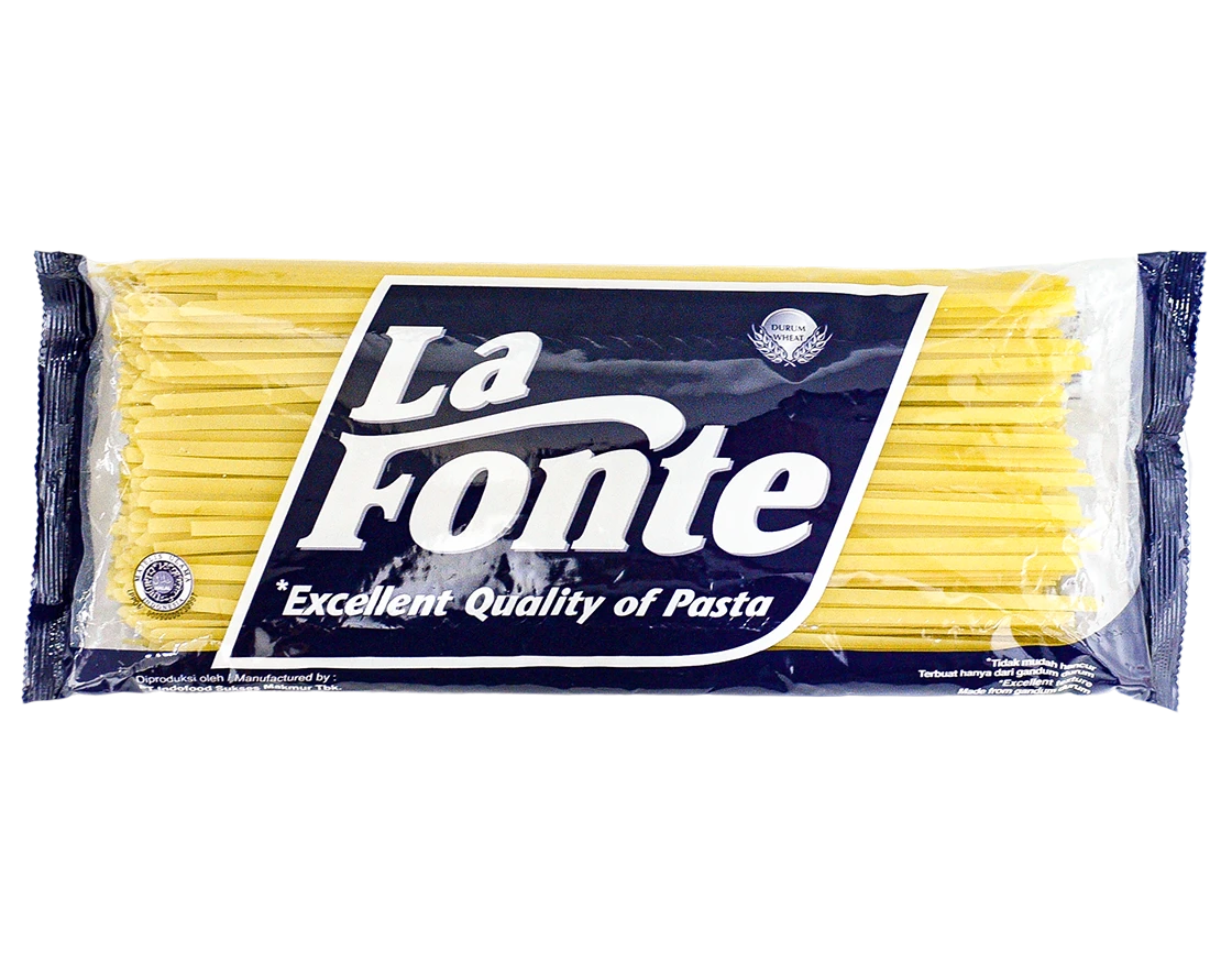 La Fonte Fettucine adalah pasta berbentuk panjang yang cukup tebal. Terbuat dari Semolina gandum durum pilihan. Bisa disajikan dengan saus krim susu, minyak, dan tomat dikombinasikan dengan daging, sayuran, makanan laut, atau keju.