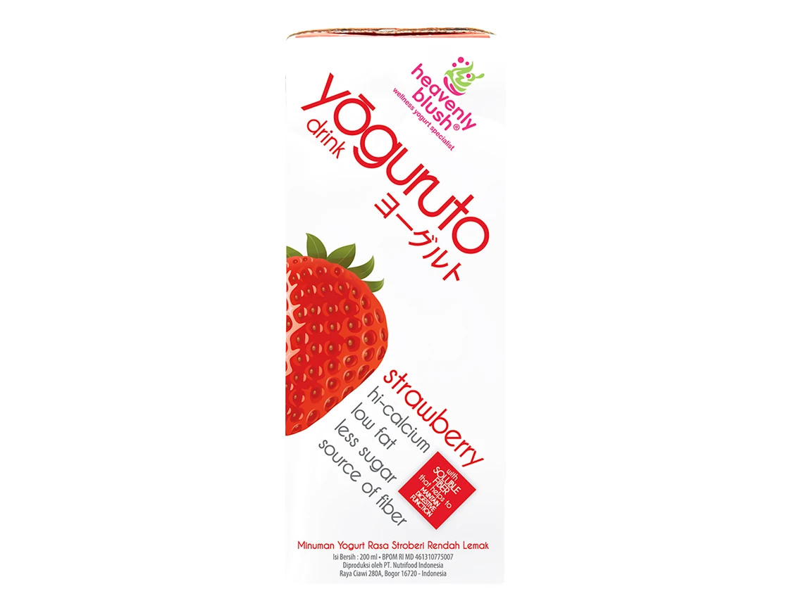 Heavenly Blush YOGURUTO is the number one choice for yogurt drinks with the right sour taste because it is made with the latest generation of yogurt-making bacteria which produces a yogurt taste that is not too sour. Produced with the best selection of ingredients to produce yogurt with the following benefits:1. Hi –Calcium, to support an active lifestyle